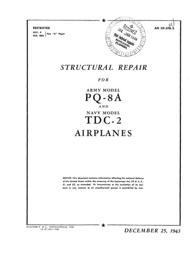 Culver Aircraft Corporation PQ-8A Army & TDC-2 Navy 1943 Structural Repair (part# 09-5FB-3)