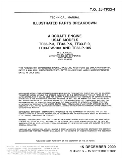 Pratt & Whitney TF33-P-3, P-5, P-9, PW-103, P-105 Illustrated Parts Breakdown.