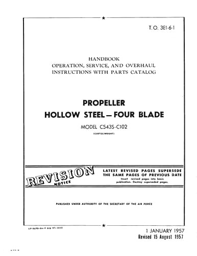 Curtiss-Wright Hollow Steel Propeller 4 Blade Operation, Maintenance, Overhaul, Parts (part# 3E1-6-1)